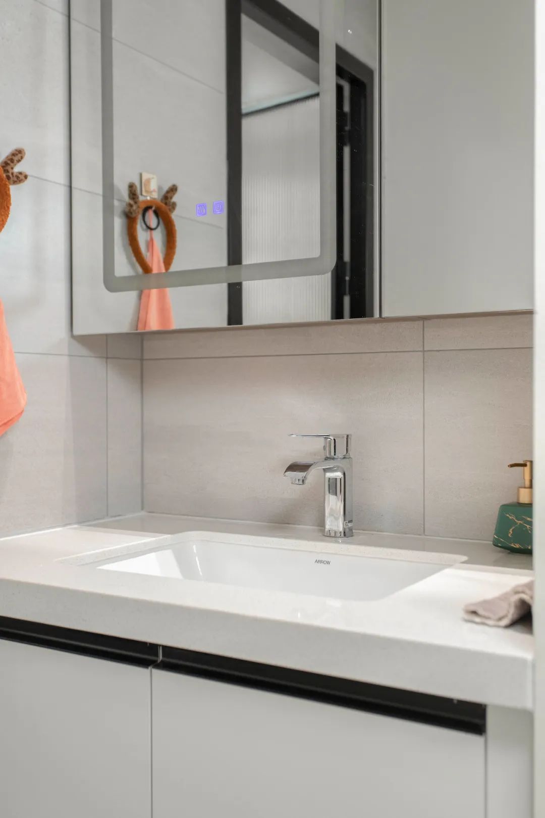 玄關設計換鞋凳+鞋柜+底部常用鞋換鞋區+掛包區+掛傘區,回家后可以第一時間將手里的東西放下,舒適度最高。